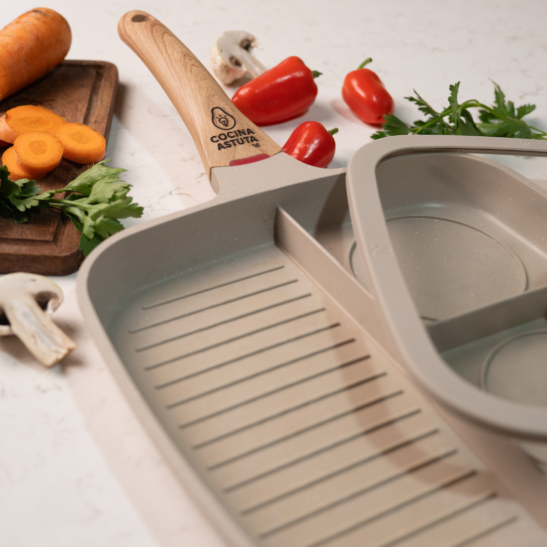 La sartén de aluminio antiadherente Cocina Astuta es tu aliada ideal para cocinar varias preparaciones al mismo tiempo, sin mezclar sabores y sin ensuciar de más.